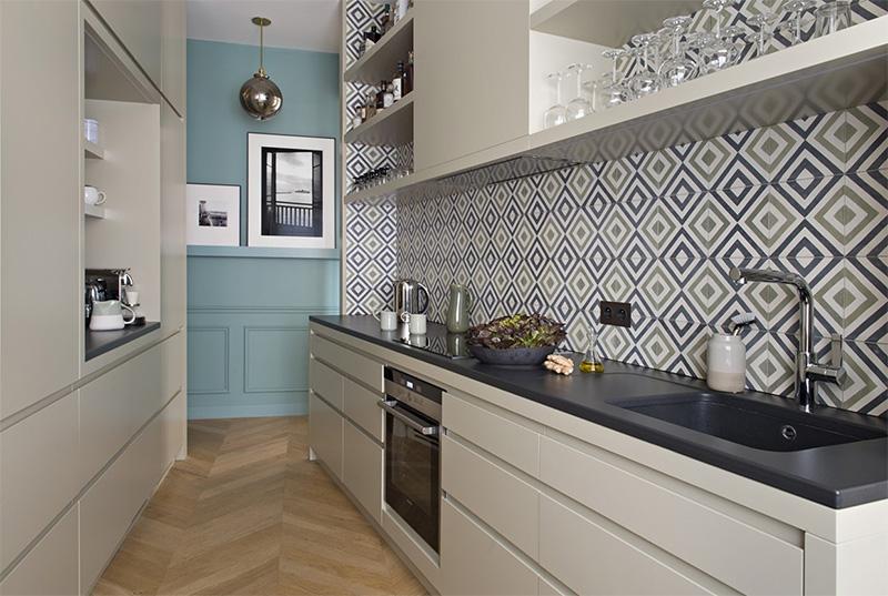 Dans la cuisine ou la salle de bain, ils habillent aussi bien le sol qu’une crédence ou un plan vasque, où des modèles de taille moyenne et richement décorés créent un rendu unique. Au sol, ils structurent les espaces : tapis graphique au milieu d’un séjour, entrée pleine de caractère, ou encore délimitation visuelle entre cuisine et salle à manger dans une pièce ouverte.
